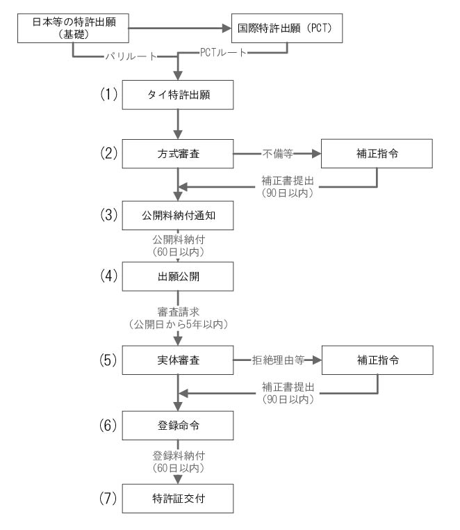 タイ特許の出願から登録までのフロー